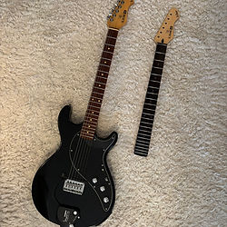 Denna unika gitarr har levt ett hårt liv! Ägaren till denna Line 6 Variax 300 har två halsar till samma gitarrkropp där allt behöver snyggas till. Vi börjar med rekonditionering av gitarrhalsen som sitter på gitarrkroppen och tar den andra halsen lite senare. Vi polerar fretsen, rengör greppbrädan och oljar in med lemon oil, gitarrkroppen tvättas rent och polerars på alla sidor. Kunden bad oss i detta fall att inte skruva loss plektrumskyddet vilket vi självklart respekterar. Det sitter tydligen väldigt avancerad teknik på undersidan till gitarren. Med den nedersta potten går att styra gitarrens ljud med olika effekter och ljud som exempelvis 12 strängat ljud, olika varianter av humbucker/singlecoil mikrofoner samt en massa andra gitarrmodeller. Vi satte på ett par nya Ernie Ball Hybrid Slinky strängar som kunden hade med sig. Gitarrhals nummer två såg väldigt sliten och använd ut. Tidigare ägare har troligtvis försökt sig på någon typ av träbehandling av greppbrädan. Vi gör en rekonditionering av halsen som på samma sätt som den första vilket gav en stor och bra effekt! Till sist önskar kunden att vi monterar på en Fishman Triple Play mikrofon på gitarren. Som tur är krävs inga större ingrepp på gitarren för detta och allt går att återställa om man inte längre önskar använda den. Avslutningsvis, en riktigt rolig och någorlunda annorlunda gitarrprojekt som GuitarCare fixat till! Kunden blev väldigt nöjd med resultatet och vi ser fram emot att fixa fler härliga gitarrer framöver.